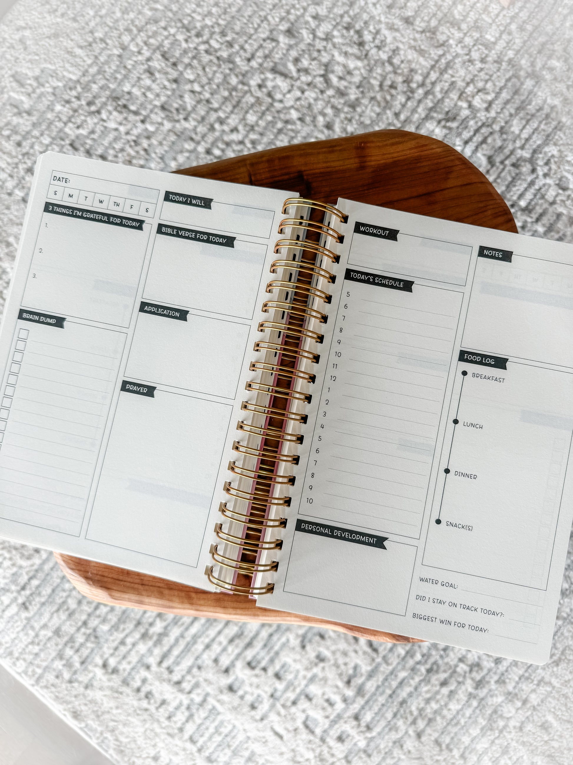 God had placed this project on my heart and I felt called to create something that could be shared. The mission behind this Faith Based Fitness Planner was to create one space. One space to help all women build their faith, work on their health and wellness goals consistently, keep up with work/home demands, and organize the hustle & bustle of life! I personally was working with so many different sources; a planner, a notebook, a gratitude journal, a to-do list & a prayer journal - throughout the day and the idea to combine everything into one planner finally came to life.